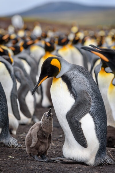 Manchot royal et son petit – Crédit photo : Karine Demetz