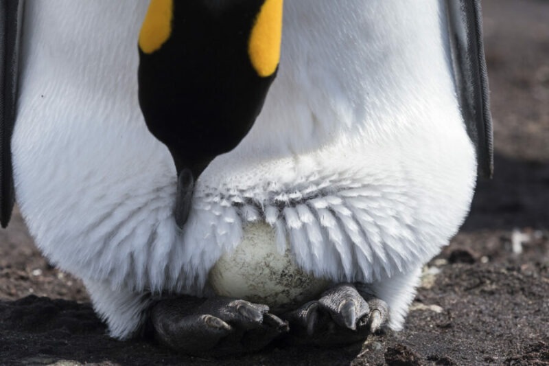 Manchot royal et son œuf – Crédit photo : Franck Lesueur