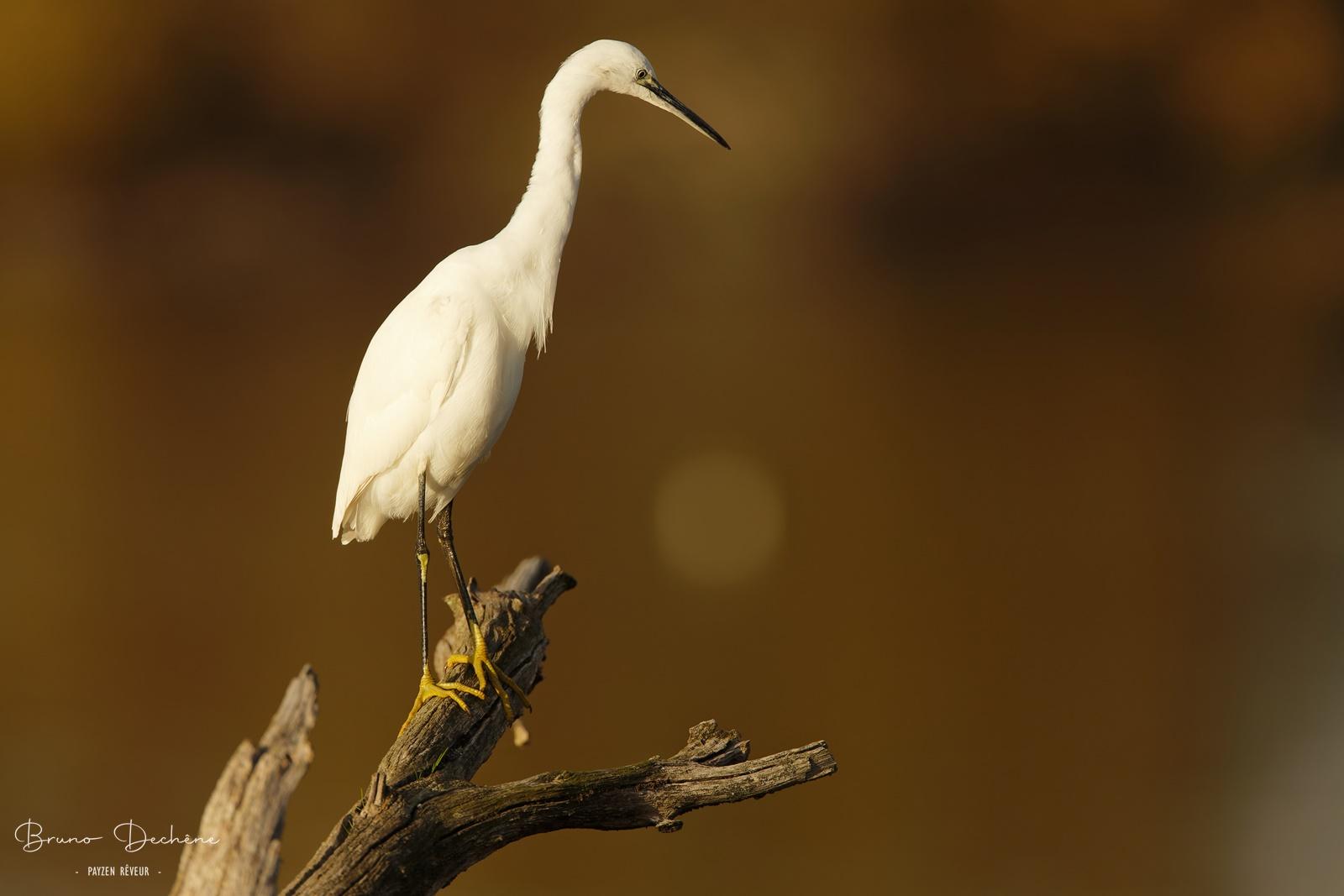 Cette Aigrette Garzette profite allègrement des derniers rayons de soleil de cette fin de journée, tout en observant la surface d’eau…
