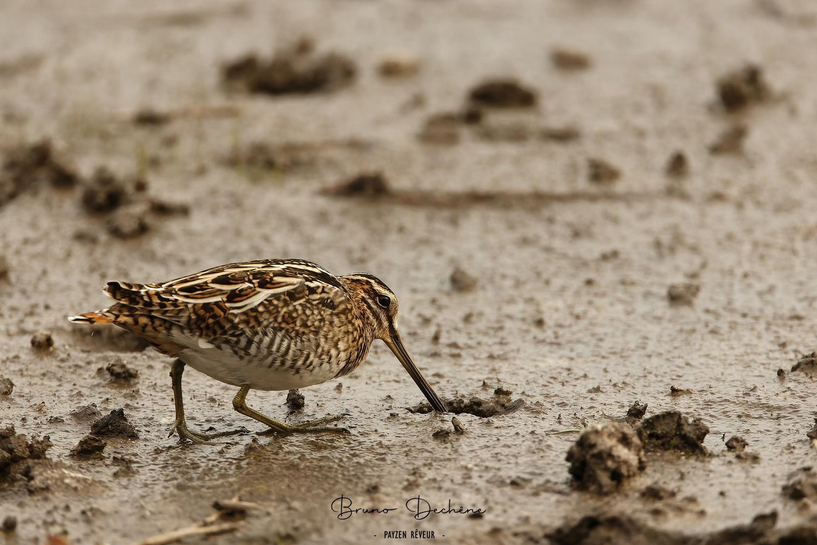 Bécassine des marais qui profite de la baisse du niveau de l’eau de l’étang…