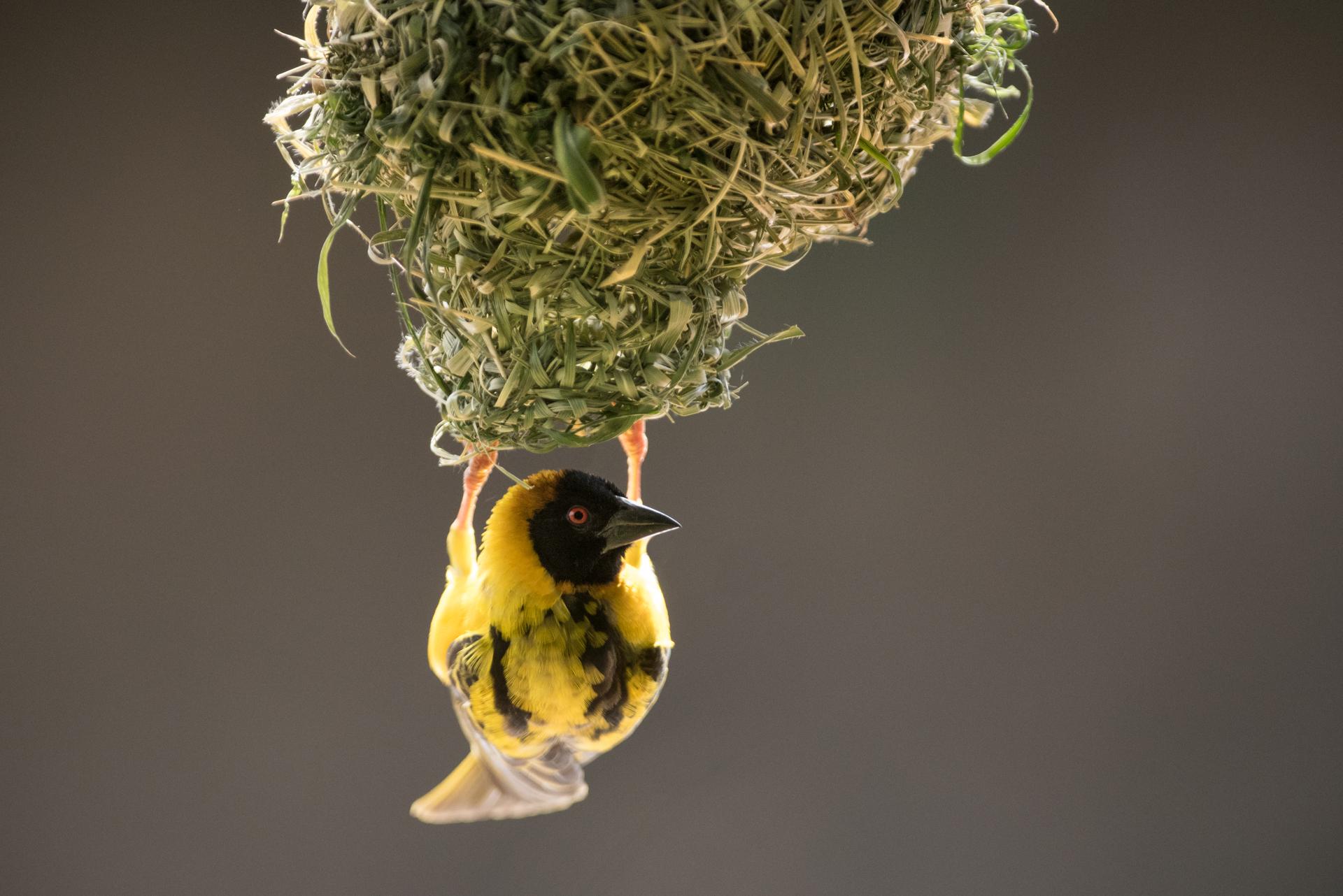 C’était au camp de Melting Pot Safaris dans le Masai Mara. Sur un arbre surplombant la rivière, il y avait plein de nids de tisserands. En observant plusieurs oiseaux volant dans les deux sens vers leurs nids, j’ai pris une photo en contre-jour de ce mâle, avec une belle lumière qui met en valeur le tisserand et son nid tissé de manière complexe. Le mâle est polygame et colonial et construit jusqu’à 25 nids chaque saison. Pendant la saison, le tisserand mâle fera une danse d’accouplement tout en étant suspendu à l’envers pour essayer d’attirer la femelle dans son nid. Lorsqu’une femelle accepte le nid, elle le tapisse de plumes, de feuilles et d’herbe. S’il n’est pas accepté par la femelle, il sera détruit pour faire place à un nouveau nid. Il faut environ un jour pour construire un nouveau nid.