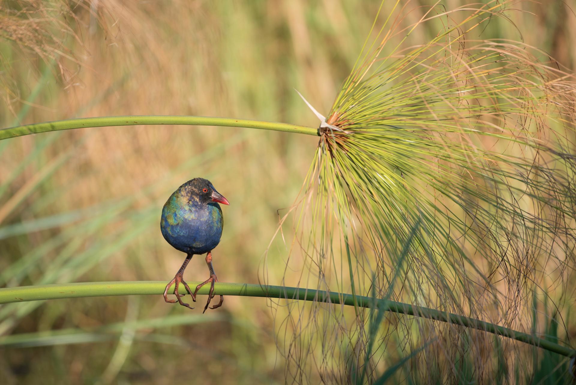 C’était la première fois que je voyais une gallinule d’Allen. Il n’est pas facile de les à découvert car ils habitent des zones humides à végétation dense. J’ai été étonnée par la coloration bleue et verte irisée et le bec et les pattes rouges, bien qu’il soit encore immature et pas complètement développés dans ses couleurs d’adulte. Ma photo préférée fut faite lorsqu’il s’est posé sur le papyrus face à mon appareil photo.