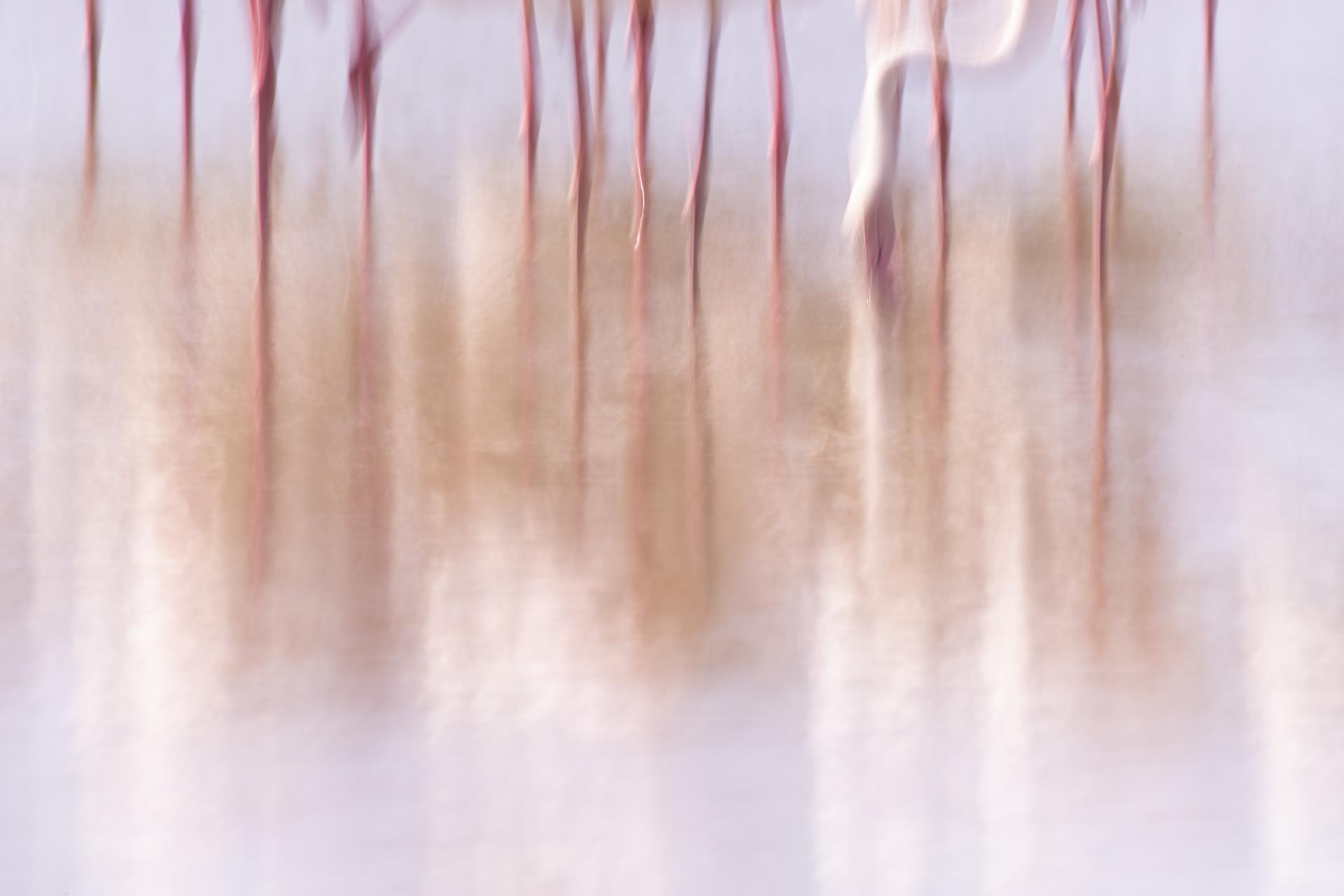 Flamants roses, 30 mai 2025, Parc ornithologique du Pont de Gau, pose lente avec ICM sur un groupe de Flamants en train de pêcher.