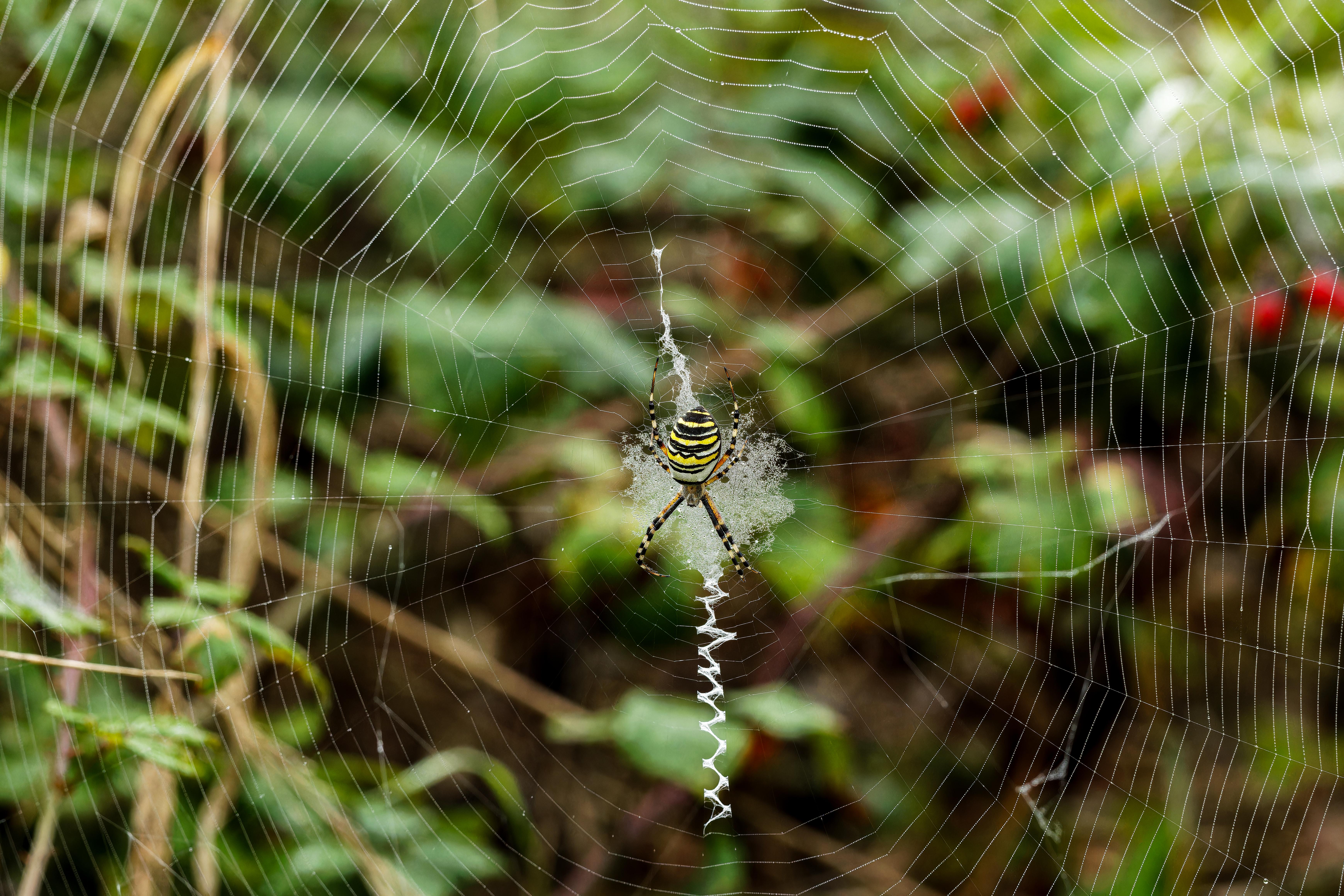 <p style= »text-align: center; »>Epeire frelon, elle tisse sa toile en zigzag à la fois pour dissuader les prédateurs et pour indiquer aux oiseaux de faire attention afin qu’ils ne la détruisent en volant a travers </p>