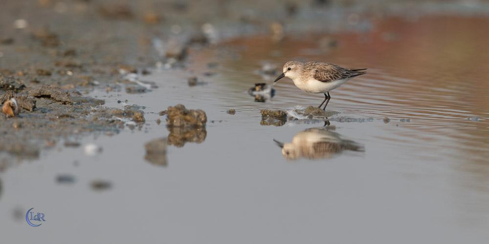 Pour le gravelot, j’aurais dit un petit bécasseau, mais il n’y en a peut-être pas ayant un collier interrompu ? Il faudrait voir les listes géographiques.