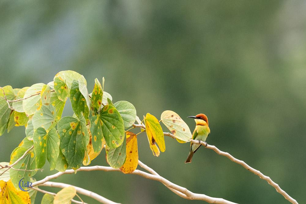 Heureusement, j’étais accompagné par une ornitho thaïlandaise qui a l’œil pour trouver les oiseaux car celui-ci je l’aurai loupé à coup sûr ! Il faut viser entre les feuilles et branches pour le voir.