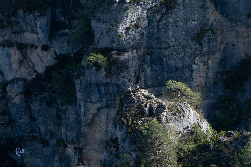 Avec 2 minuscules vautours (sur le rocher de gauche) photographiés d’en haut par Bernard (qui, me semble t-il, nous l’a présentée lors de la séance technique en ligne).