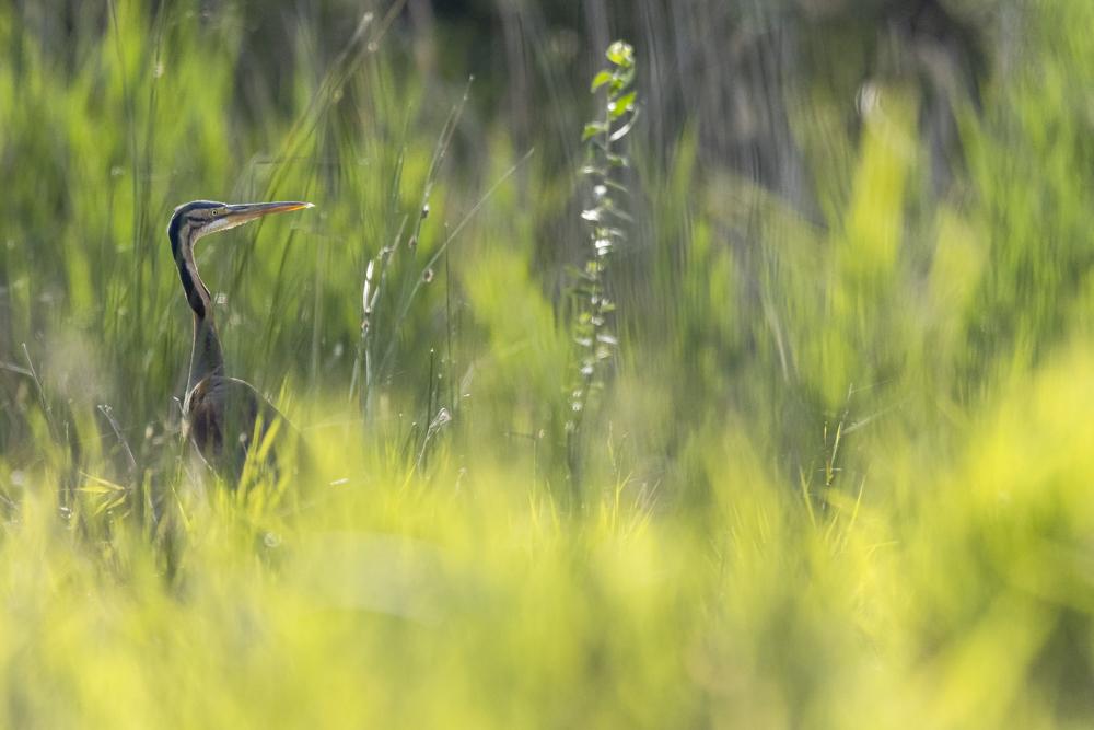 Photo 13 : Héron pourpré. Affût Flottant dans un étang de la Dombes. 2023.